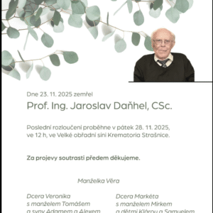 Oznámení o úmrtí prof. Jaroslava Daňhela
